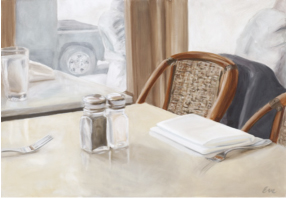 paintings, entitled “Bistro,” display her keen, detail-oriented eye